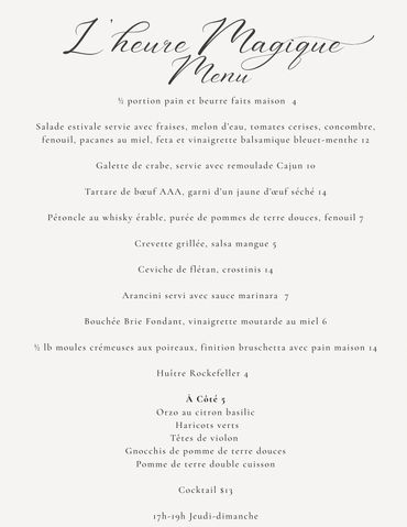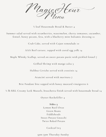 (Crab cakes, 5 scallops, 5 grilled shrimp with mango salsa, 4 oysters Rockefeller, 6oz halibut, 6oz salmon, 1/2 lb RRL mussels, blistered tomatoes, fiddleheads, lemon basil orzo) 175